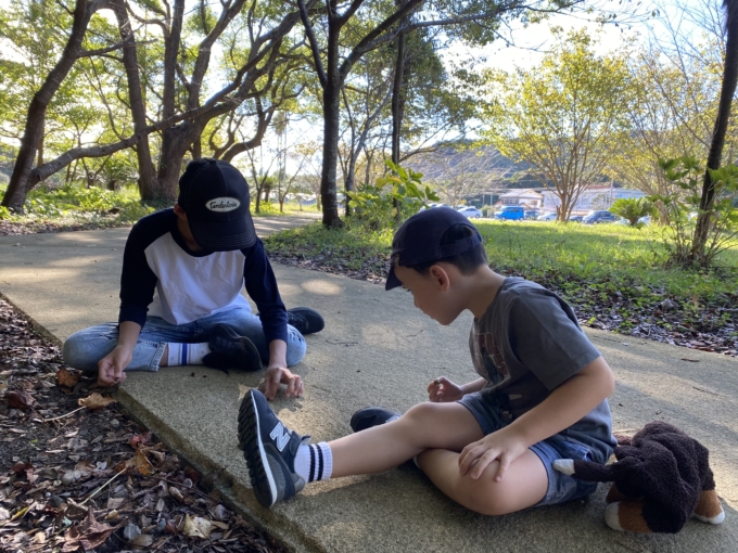 この時↑はどんぐりをコンクリートで擦って半分に削ってどんぐりボートを作っていたよ。