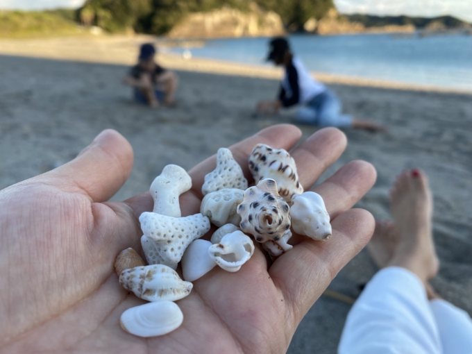 わたしは小さくてかわいい貝やサンゴをまた拾いました。