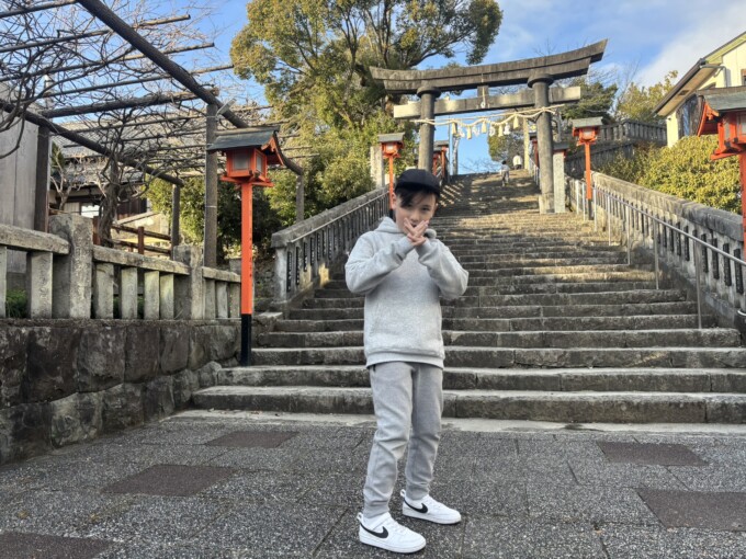 ちょうど出てきたらいとこのみつかちゃんに会って、「親子でペアやん!」って写真撮ってくれた。