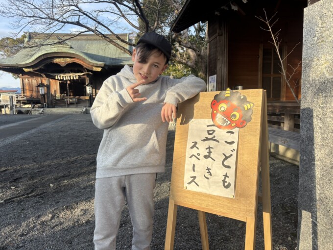 そんな節分に一條神社さんが「豆&もち&お菓子投げ」をしてくれてそれにフィオン君とフィオンの同級生のお友達たちと参加してきたよ。一條さんとこの川村さんのお孫さんは幼稚園からのお友達でみんな仲良しだからめっちゃ声かけてくれてありがたい!!