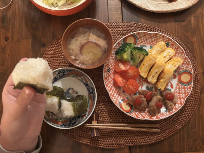 うちはめっちゃ偏食フィオンくんがいるからフィオンがもしかしたら食べられるかもと、一応スーパーのたまご巻も買っておいたけど食べなかったので急遽フィオンだけおにぎりと玉子焼きとかあるものごはん。
