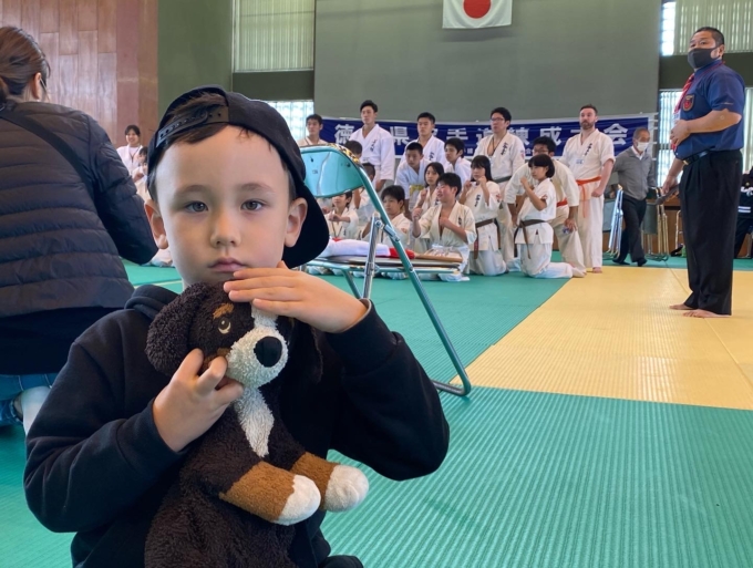 初戦の相手は上の写真の奥にいる同じオレンジ帯の男の子。