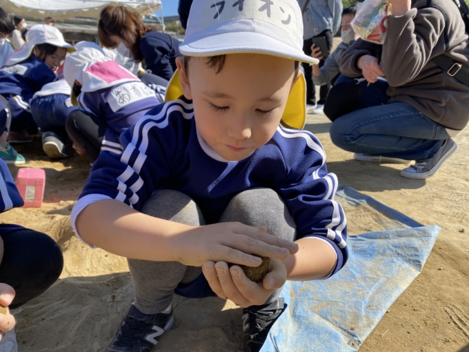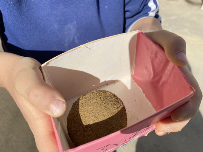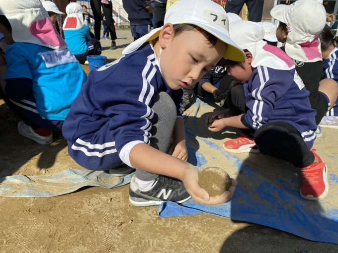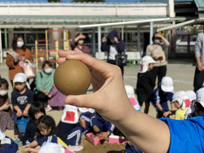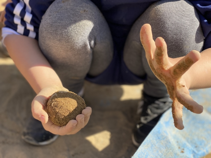 ちゃーんとグラウンドの真ん中におだんごを作りやすい土が用意されていてそれで作るの。