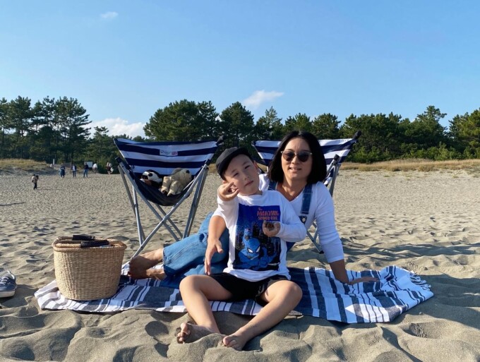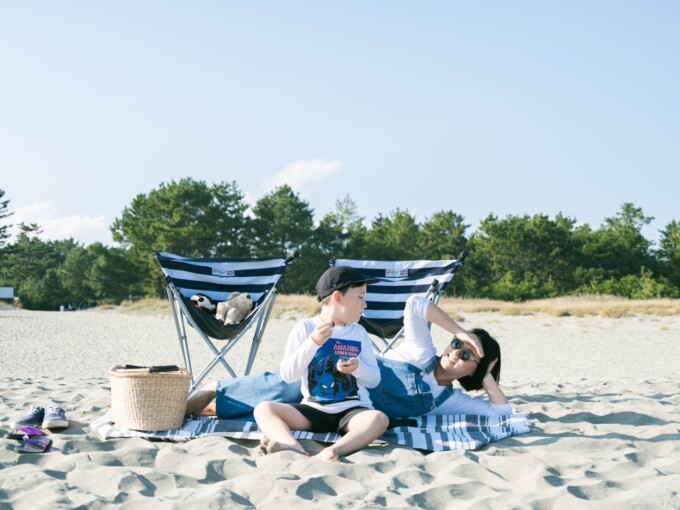 最初こそイベントの趣旨である「イスに座って海を見る」をしていたけどそんなのフィオンは3分くらい。あとはもちろんずーーーーーっと砂遊びや水遊び。一応フルセットのお着換えは持って行ってたし、フィオンはゴーグルまで持って行ってたけどさすがにびしょ濡れにはならなかったよ。
