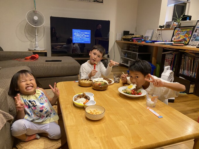 それをフィオンくんが年少の時に年中にいていっぱい遊んでもらってたユーサクと、妹ちゃんのたまきと一緒に食べたよ!フィオンは「今まで食べた中で一番おいしい!!!」って言ってた。わたしのハンバーグよりずっとおいしかったらしい。