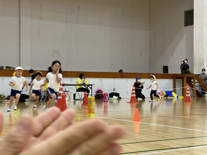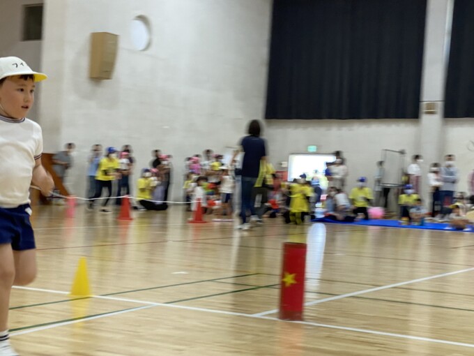 今年のこいのぼり運動会は、幼稚園の園舎の建て直しでグラウンドが半分使えないので