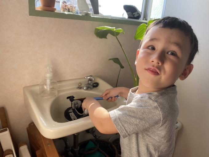 なんでもやりたい4歳だから、わたしがこっそり洗ってても「Mummy! What are you doing?」って
