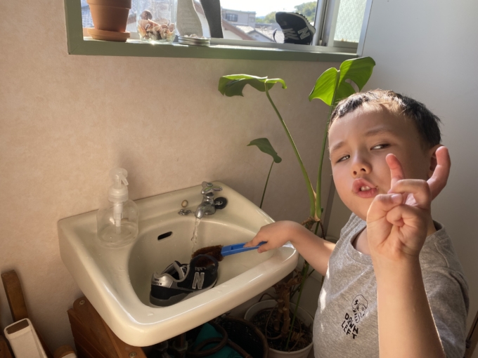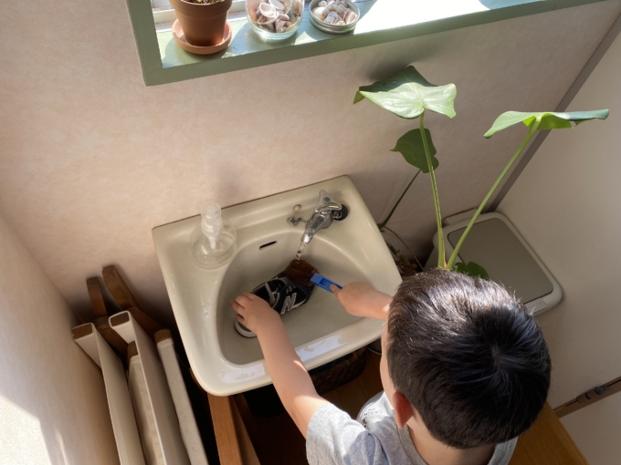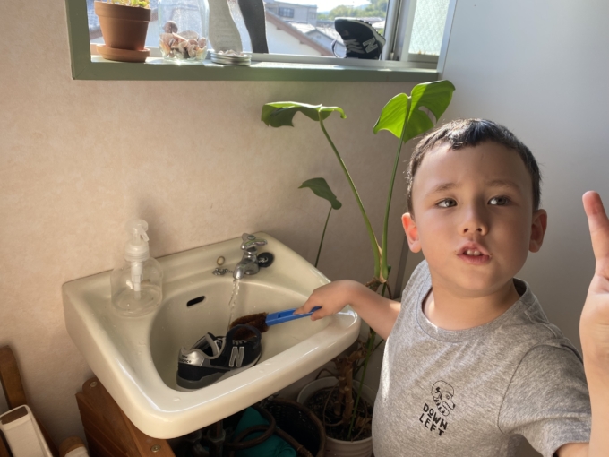 だからけっこう頻繁に平日もお靴洗うのね。幼稚園用のスニーカー2足しかないから洗わなきゃ無理!