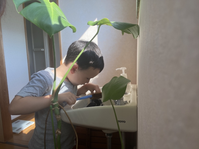 当たり前に床もびしょぬれだけど、お手伝いやりたい!って気持ちと経験を尊重。わたしは色々ただ我慢。