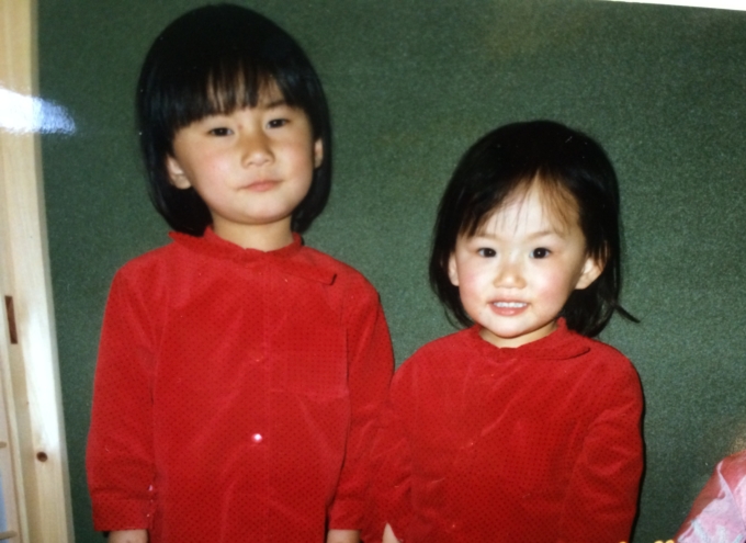 (ほぼ今のフィオンと同じ4歳になったばっかりくらいのわたしと次女まーちゃん)