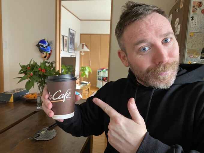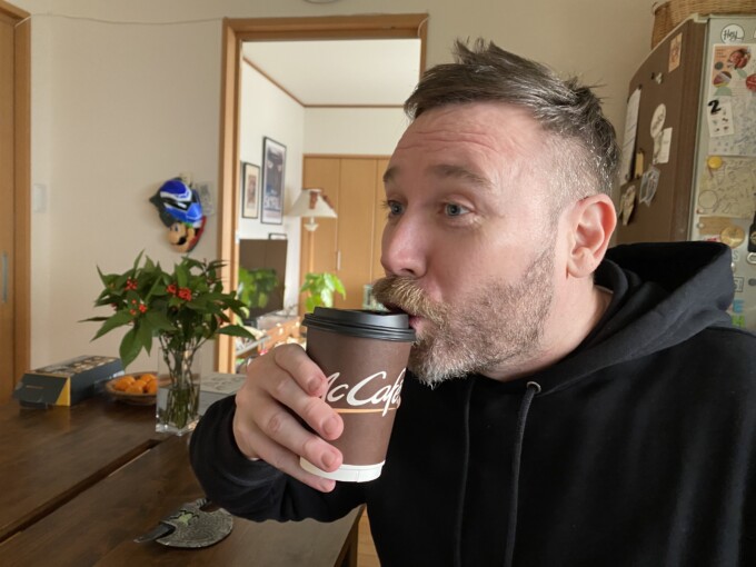 エメちゃんはオーストラリア発祥の「フラットホワイト」が四万十市だとマックカフェにだけあるからそれを求めて。