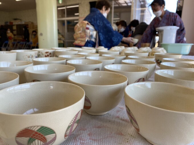 前にあった年長さんの体験の後の短時間で茶筅やお茶碗をダッシュで洗って準備していて大変そうだったぁ。