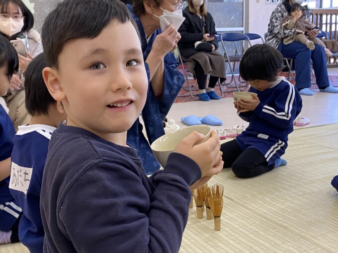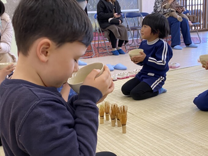 わたしはここでタイムアップ!ダッシュで整体に行ったけど、エメちゃんは残っていたのでお茶をたてて頂いてお作法も習って楽しい体験ができたみたい。こういう行事がたくさんある幼稚園とっても好き。