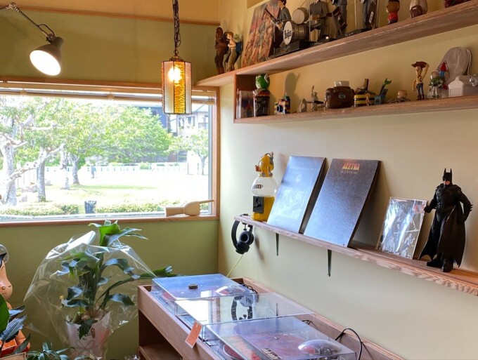 お見せのいろんなところにかざっているフィギアや本も全部レトロでかわいいの。