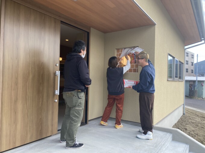 どんな色がいいだろう、太陽だけに照らされた時、照明を点けた時、いろんなパターンで比較して決めた色もとってもよかった!!!