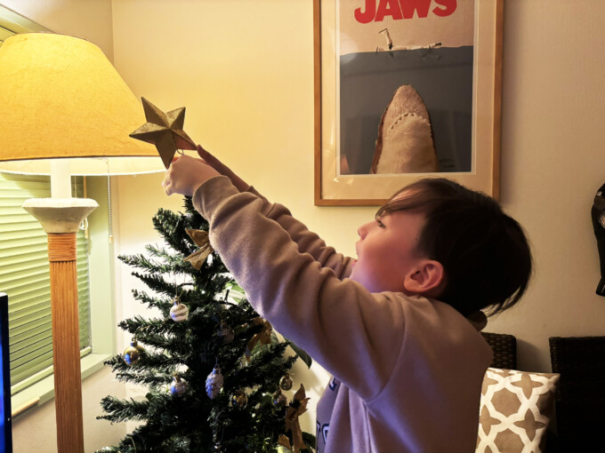 写真は飾りつけしている間に見ていたホームアローン。もうここ数年クリスマスデコレーションをするときはホームアローンを見るって決めていて今年もフィオンくんのリクエストで見ながらしたよ。かわいい習慣だよね。