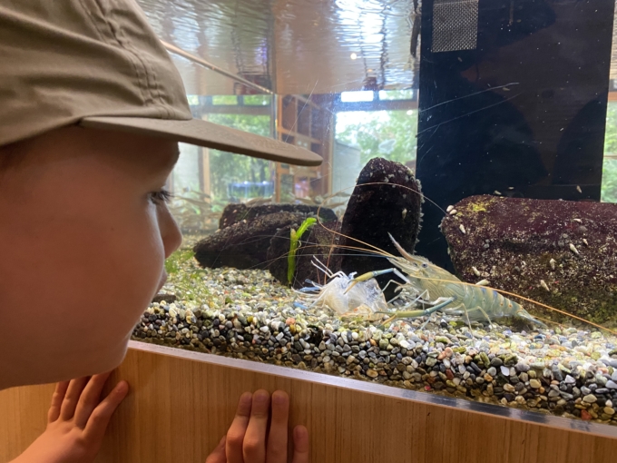でもすぐにエビの脱皮を見つけたり、珍しいお魚みつけたりで子供たちは楽しそう。