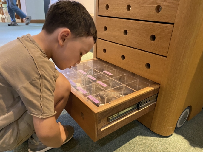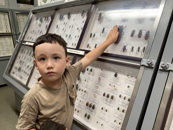 2階にはすごい量の昆虫の標本があって、生き物博士の甥っ子くんはここで才能爆発!