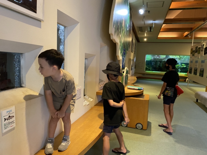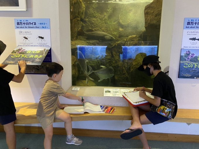 行ったのは「四万十学遊館」っていうところ、生きたお魚や昆虫の標本がたくさんみられるよ。