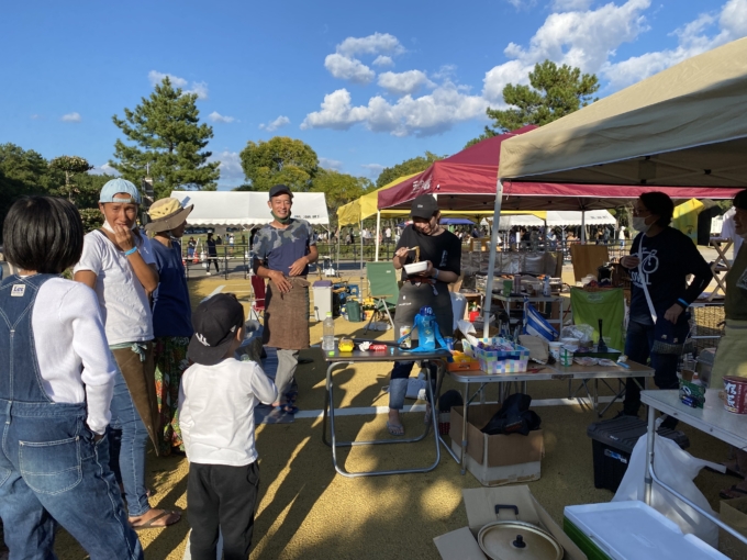 そのお店の後ろでみんなと一緒に遊んでもらいながら食べたり飲んだり