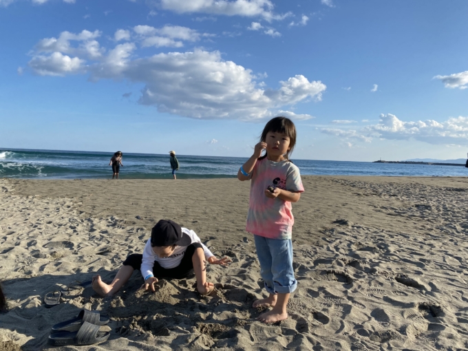 ビーチで遊んでいるとフィオンと同じクラスのお友達あみちゃんに会えたり
