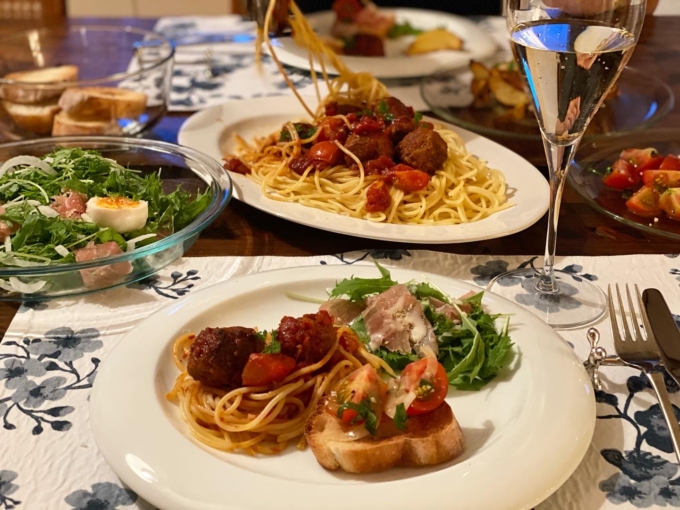 ひさびさに今日夕食をお家で家族と食べたよ!メニューはワイン飲みたかったらかイタリアン。