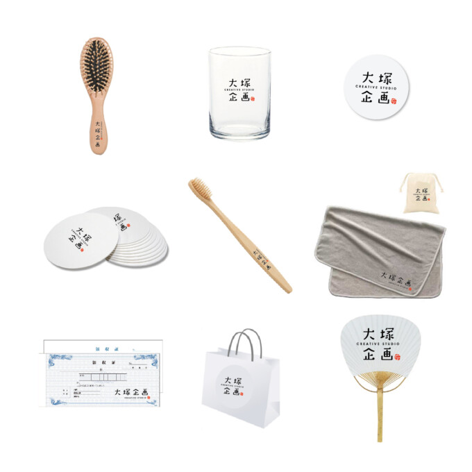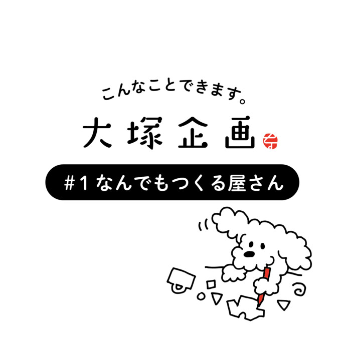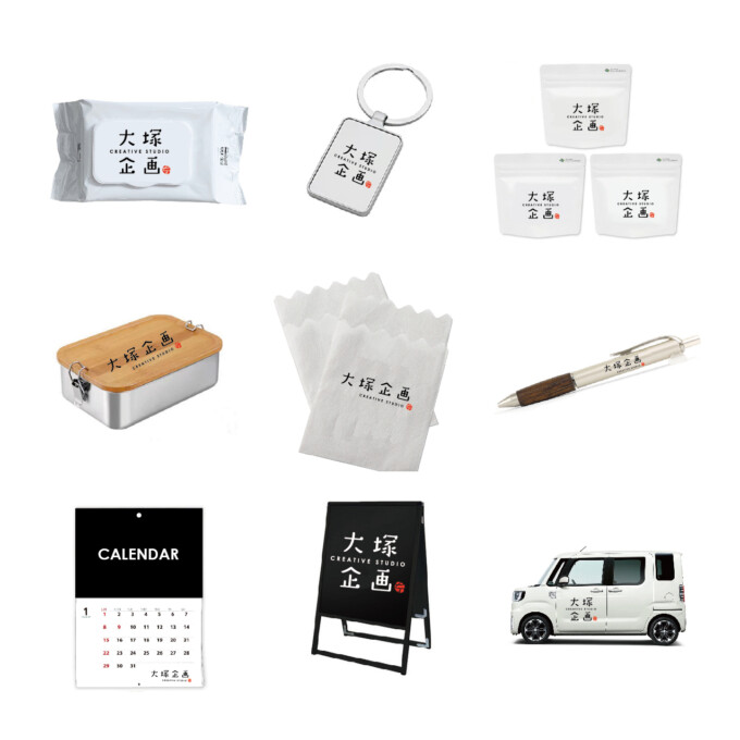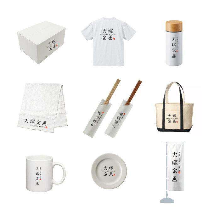 でもなんでもって言うとみんな例えばなに?ってなるので多少見える化してみたの。でもこれってほんと超一部なのでパンフレットなんかにはもっとたくさん例を載せようと思っています。とにかく、会社なんかで名刺や封筒は印刷屋さん、けどウェアはウェア屋さん、で看板は看板屋さんにってバラバラだった発注を大塚企画がまとめてうけます!ってやつ。