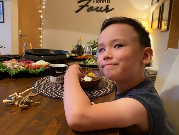 フィオンはまだあまり焼肉が好きじゃないからだいたい別メニュー