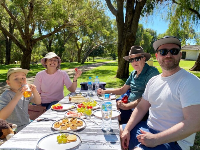 ランチがてらスナック(英語で言うスナックはお菓子のスナックじゃなくて軽食って意味ね)やフルーツを持って行っていたのでみんなでピクニック。