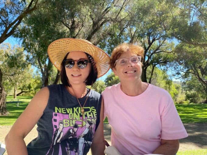 偶然だけどわたしが着ていたNew Kids On The Blockのピンクとお義母さんのピンクがいい感じいマッチしていたww