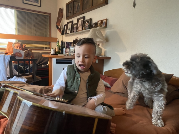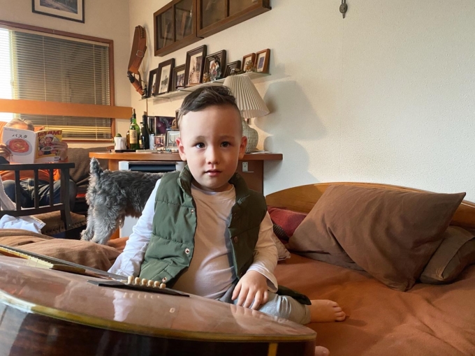 ちなみに右奥に見える小さな人のイラストはたぶんお父さんのお兄ちゃんが描いたお父さんの若い頃。